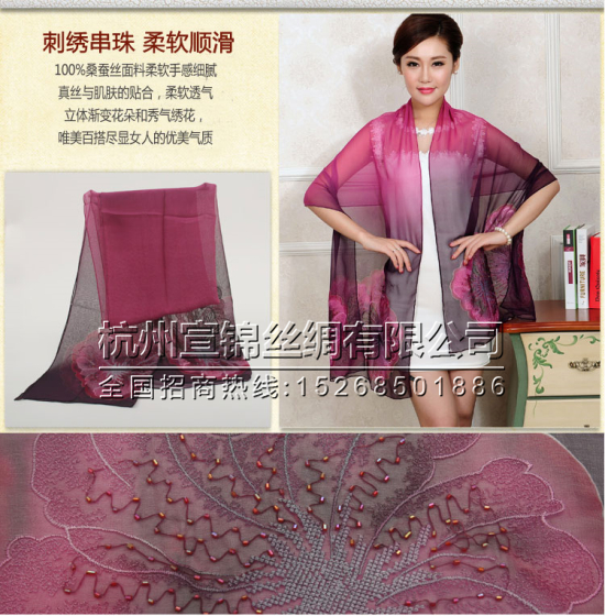 女款真丝绣花丝巾